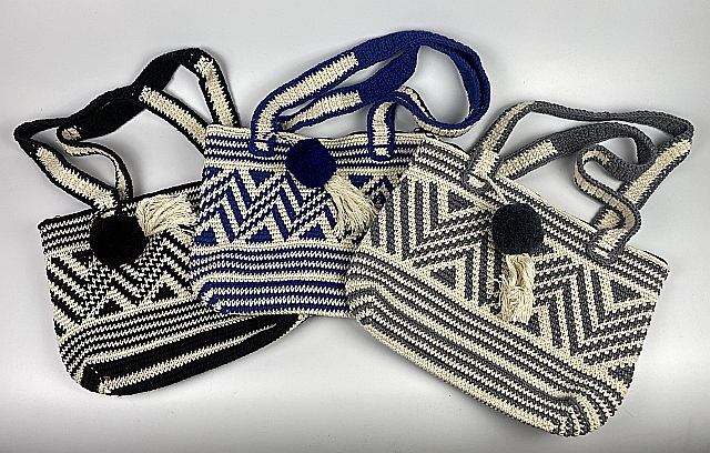 Dier Kunst des Häkelns haben die Mayas zur Vollendung entwickelt. Eine echte Handarbeit aus Baumwolle mit authentischem Mustern. Ein farblich passender Bommel verziert die Tasche. Ein fair gehandeltes Produkt aus Guatemala. Die geräumige Tasche hat einen Reißverschluß. Größe ca. 30 x 24 cm.
