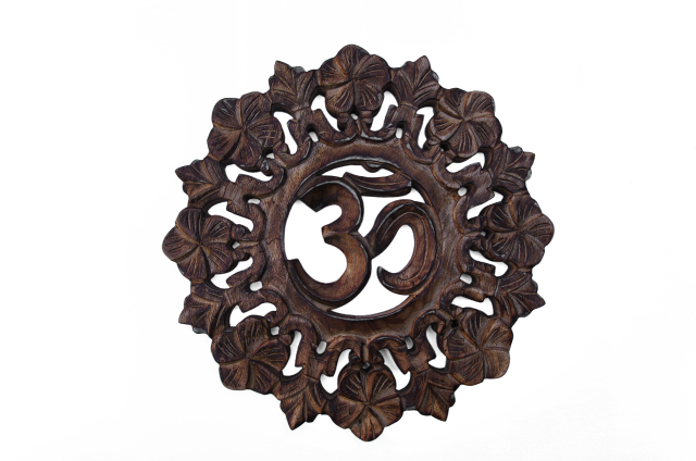 Aufwendig handgeschnitztes Wandbild aus Mangholz mit dem "Om" Motiv. Durchmesser ca. 30 cm.