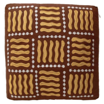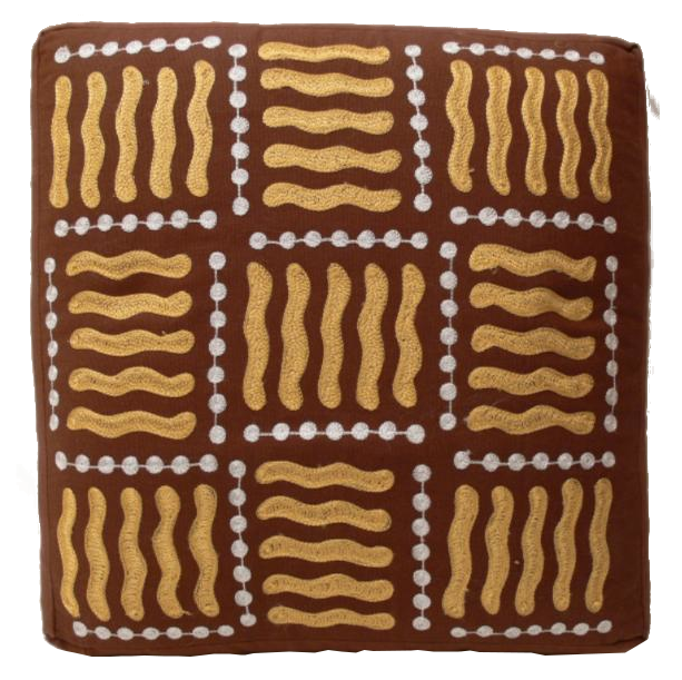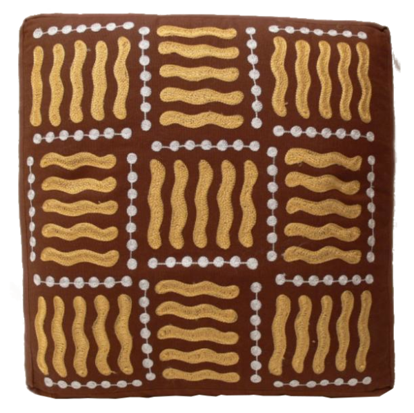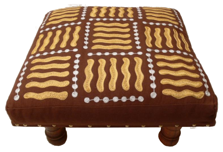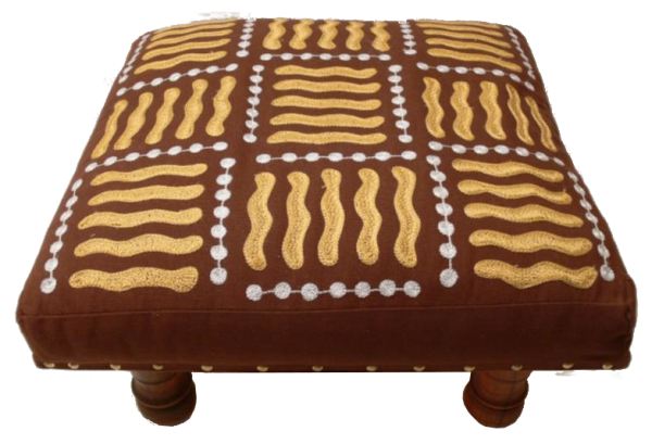 Sehr dekorativer Hocker mit einem schön bestickten Baumwollbezug und einer Füllung aus Rohbaumwolle. Ein echtes Schmuckstück für jede Wohnung. Größe Der Sitzfläche ist 40 x 40 cm. Höhe ca. 22 cm.