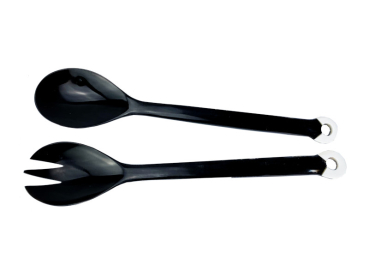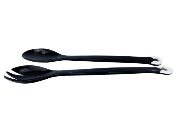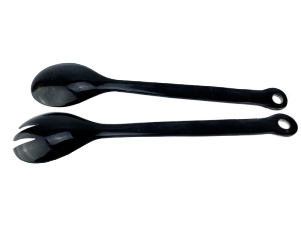Salatbesteck aus Horn mit Knocheneinlage im Griff.