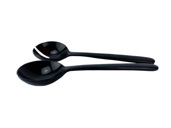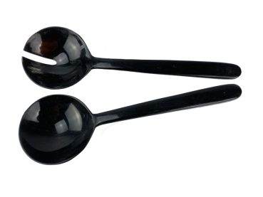 Kleines Salatbesteck aus schwarzem Horn.