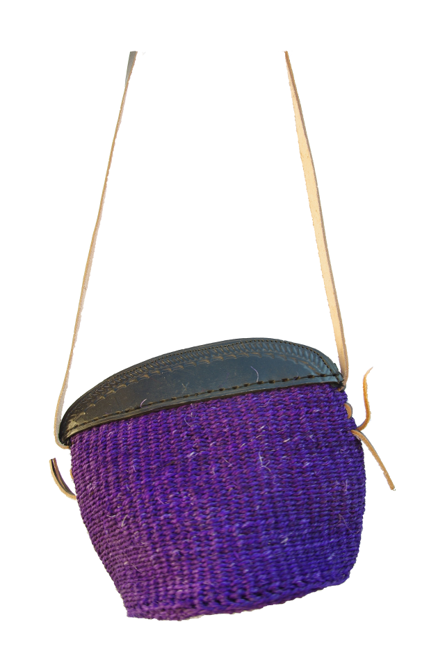 Handgefertigte Umhängetasche aus Kenia. Aus farbenfrohen Sisal hergestellt. mit Lederriemen und Ledereinfassung mit Reißverschluß.