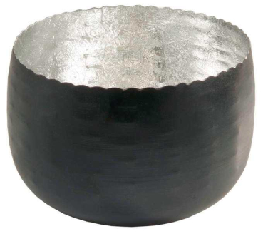 Windlicht aus Metall. Außen schwarz und innen silbermetallic.