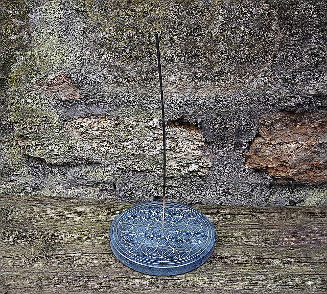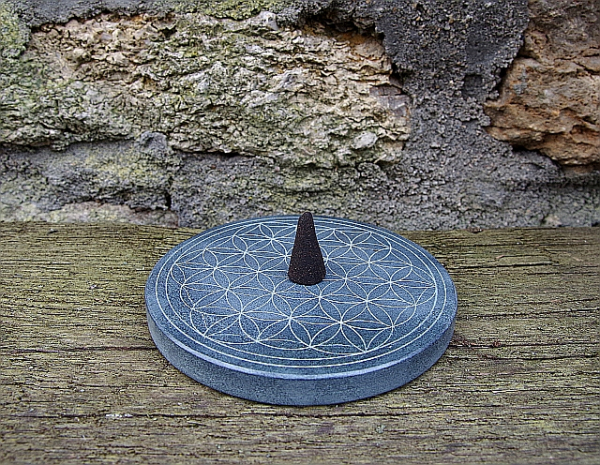 Räucherstäbchenhalter aus Speckstein mit dem Symbol der Blume des Lebens.