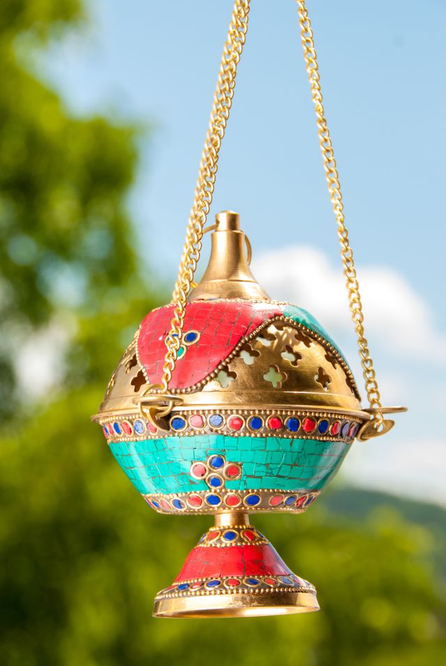 Füllen sie ein geeignetes Räuchergefäß mit Räuchersand. Stellen Sie die Räucherkohle hochkant auf die schmale Seite. Entzünden Sie die Schnellzünderkohle mit einem Feuerzeug bis diese das Funkeln anfängt.