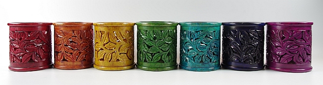 Das Stövchen ist gefärbt undverschiedenen Farben der Chakren erhältlich.