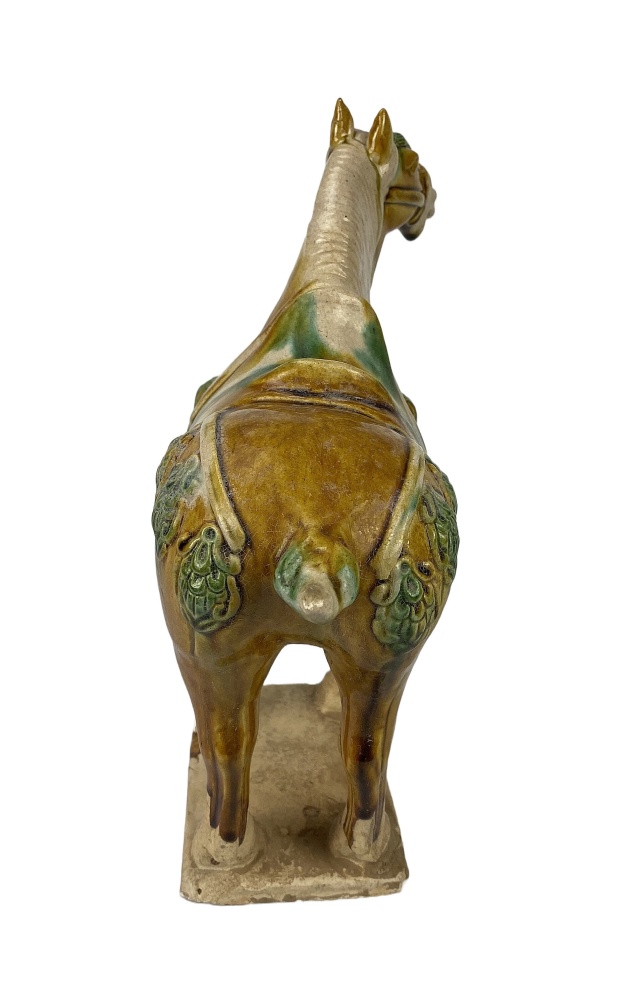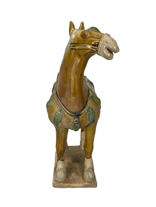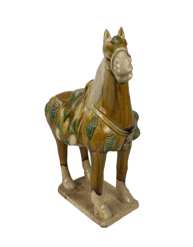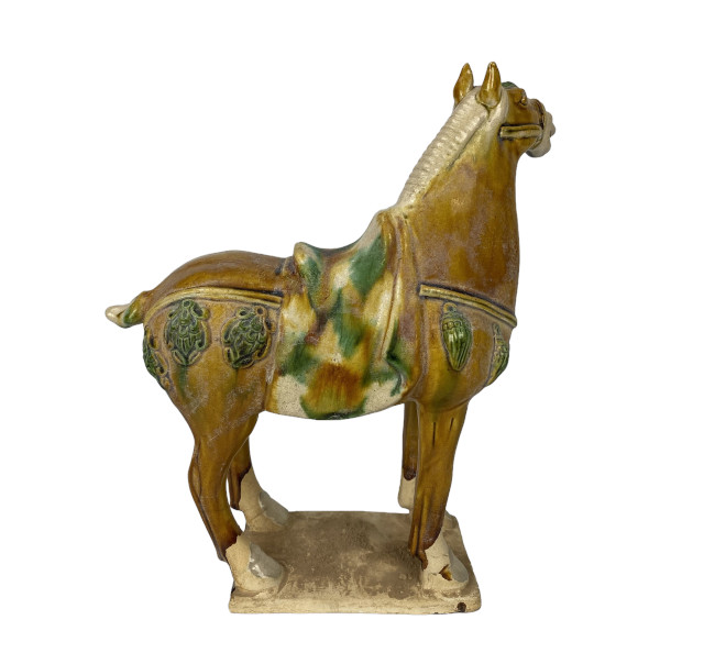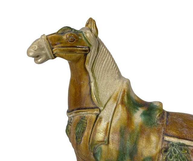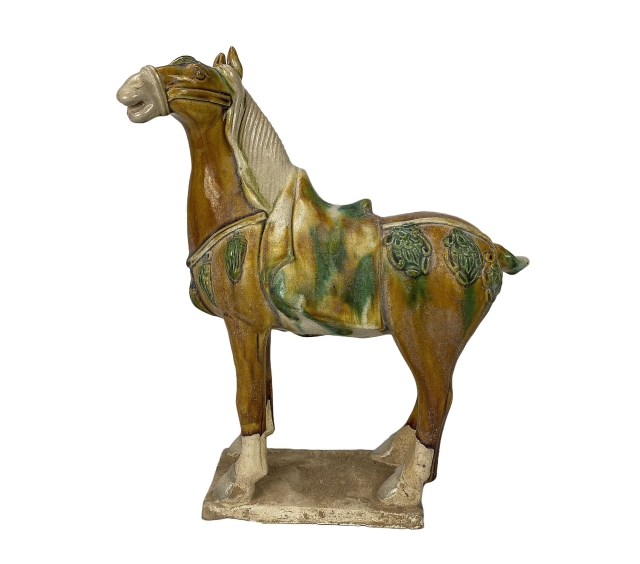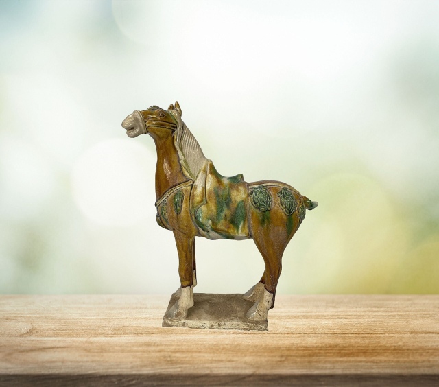 Während der Tang-Dynastie entwickelte sich auch ein ausgeprägter Pferdekult. Diese Faszination wirkte sich auch auf die Motive der Tang-Keramik aus.