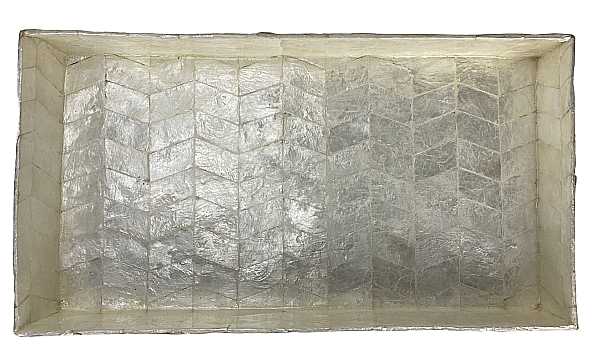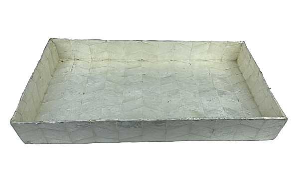 Plättchen der Capiz Muschel geklebt. Sehr dekoratives Tablett für Küche, Tisch und Wohnzimmer.