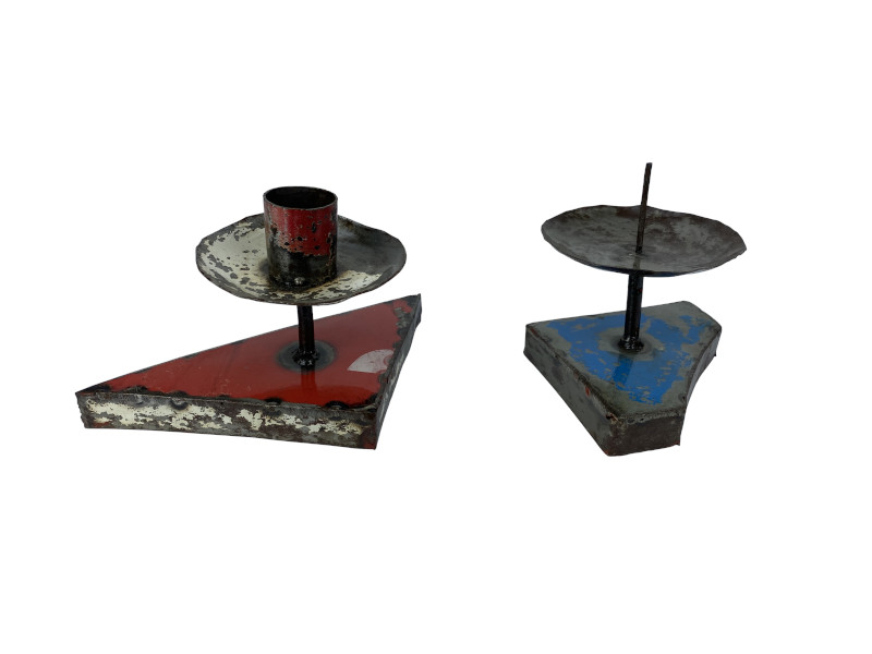 Origineller Kerzenständer aus recycelten und zusammengeschweißten Kanister-Stücken. Farbenfroh und modern verwandelt dieser Kerzenständer Ihr Zuhause in eine futuristische Wohlfühl-Oase. Upcycling made in Burkina Faso. Größe: ca. 12 x 9 x 10 cm