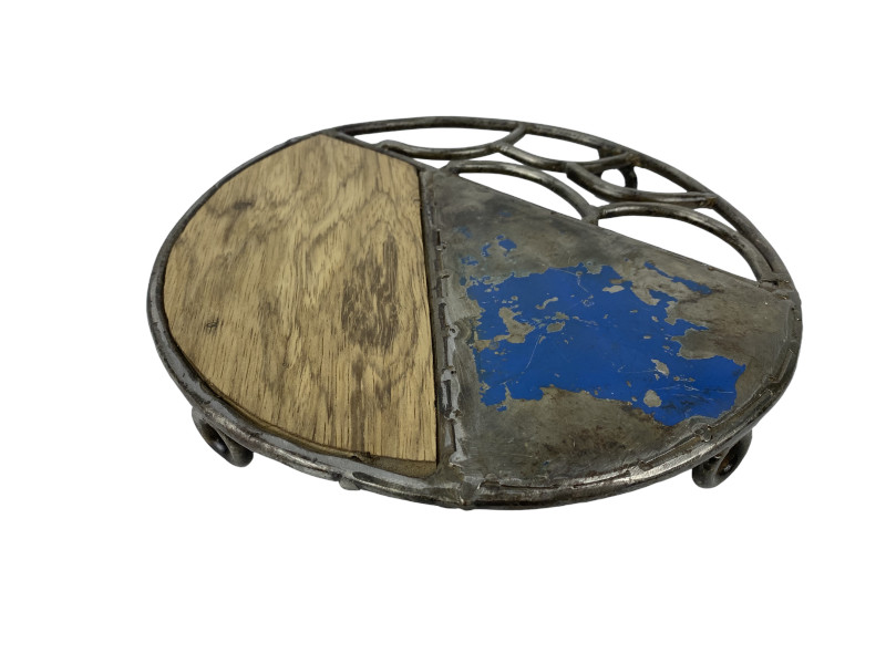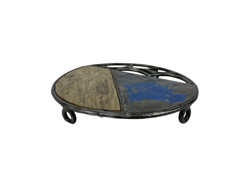 Der afrikanische Designer Kader fertigt aus Altholz, recycelten Ölfässern und Altmetall dieses absolut trendige Upcycling Produkt. Dekorativ und praktisch für Küche und gedecktem Tisch.