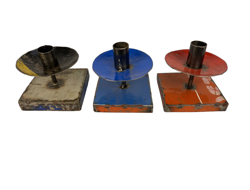 Origineller Kerzenständer aus recycelten und zusammengeschweißten Kanister-Stücken. Farbenfroh und modern verwandelt dieser Kerzenständer Ihr Zuhause in eine futuristische Wohlfühl-Oase. Upcycling made in Burkina Faso.