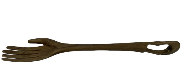 In Kenia aus Olivenholz von Hand geschnitzte verlängerte Hand. Ideal als Kratzhändchen für den Rücken. Das Griffende ist in form eines Kranichs gearbeitet. Jedes Stück ist als Handarbeit und wegen der immer unterschiedlichen Maserung des Holzes einzigartig.