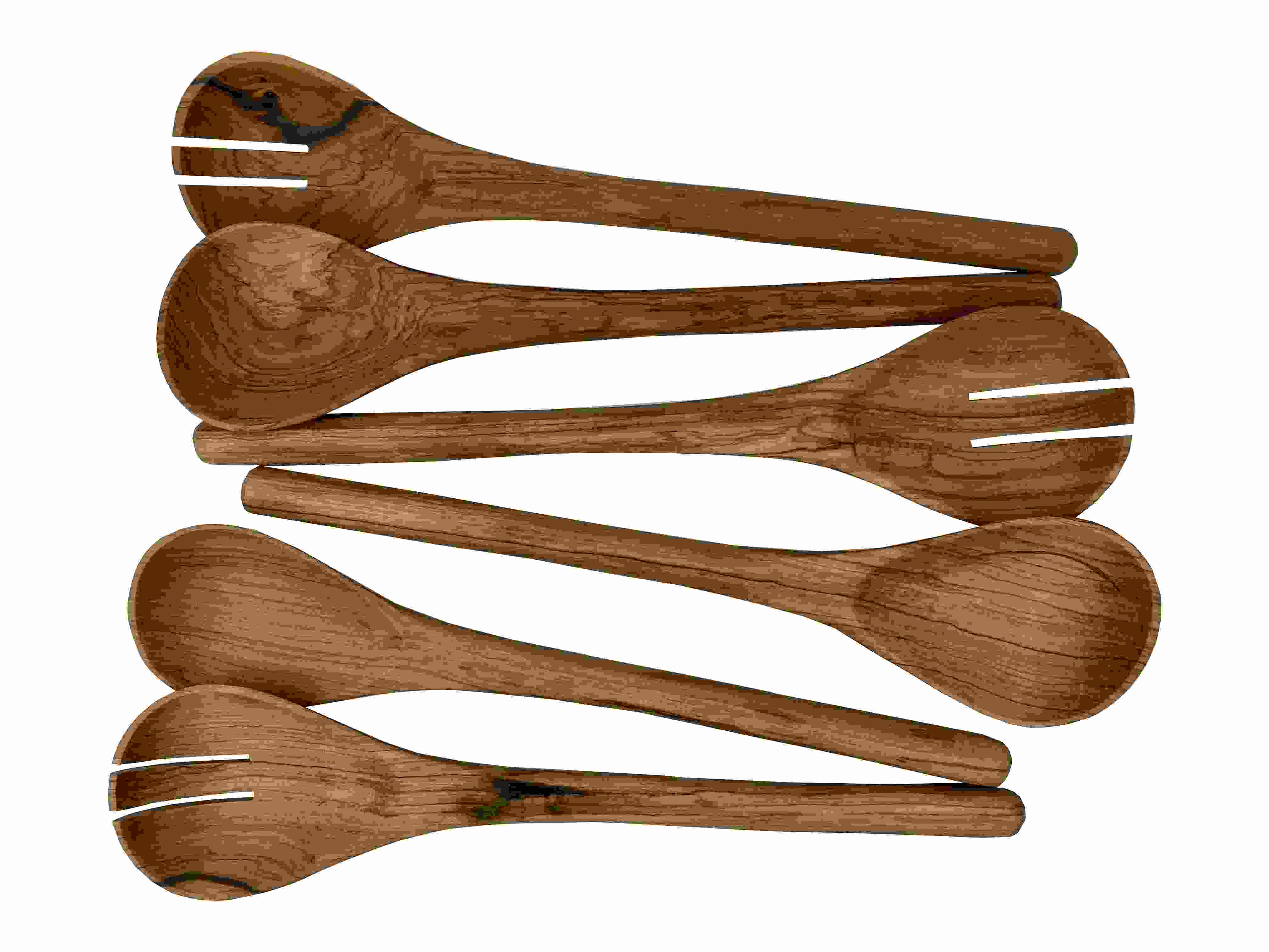 In Kenia von Hand geschnitztes Salatbesteck aus Olivenholz. Schlichte und sehr funktionale Form. Als Handarbeit und wegender natürlichen Maswerung des Olivenholzes ist jedes Paar einzigartig. Das Holz reift durch den Alterungsprozeß, wird mit der Zeit etwas dunkler und entwickelt seine typischen Patina. Zur Reinigung empfehlen wir ausschließlich Handspülung. Keinesfalls in die Spülmaschine geben. Reiben Sie das Salatbesteck zur nachhaltigenPflege gelegentlich mit etwas Salatöl ein. Länge ca. 32 cm, Durchmesser der Schaufel etwa 8 cm und Dicke des Stieles ca. 1 - 1,5 cm.