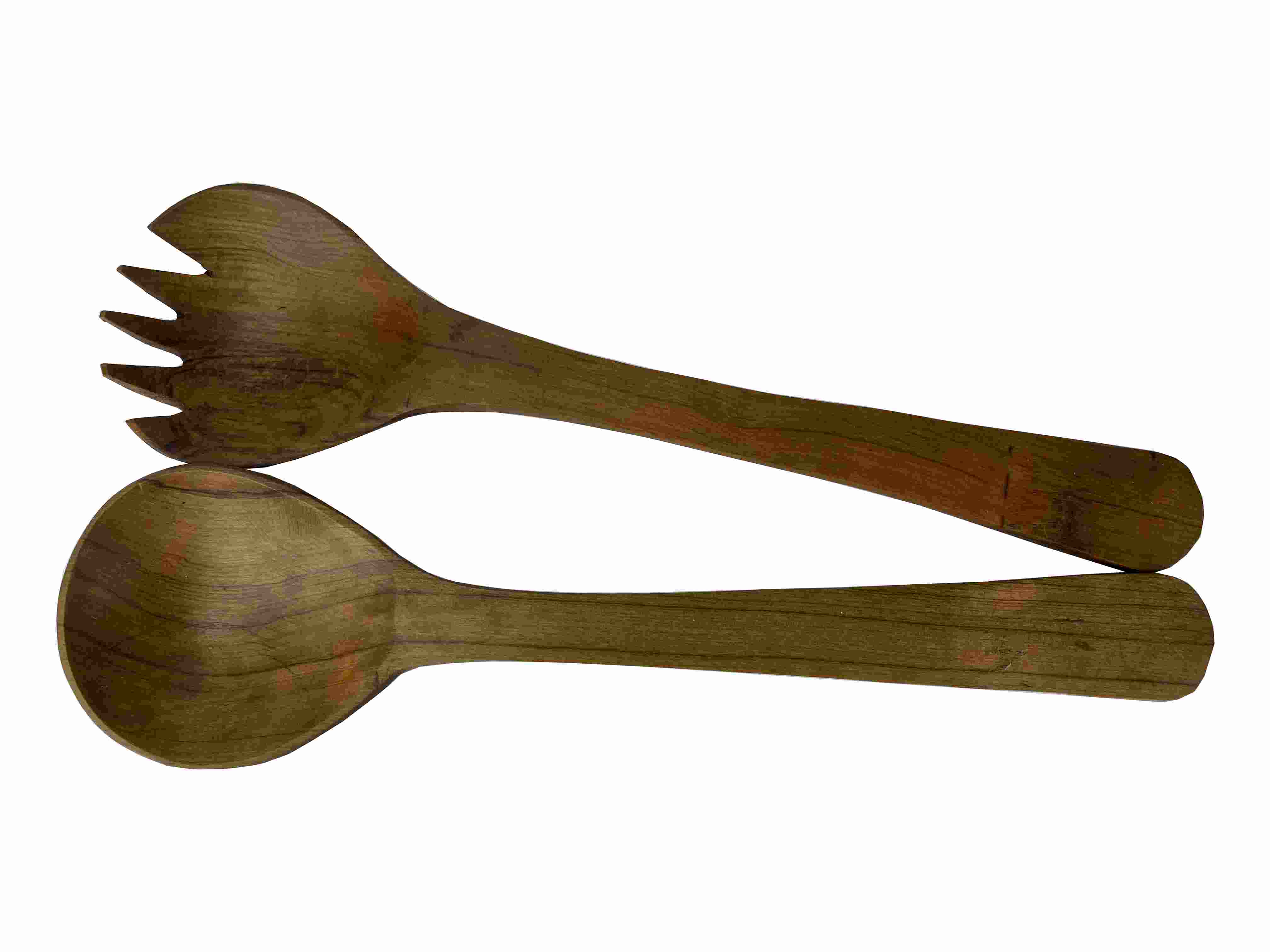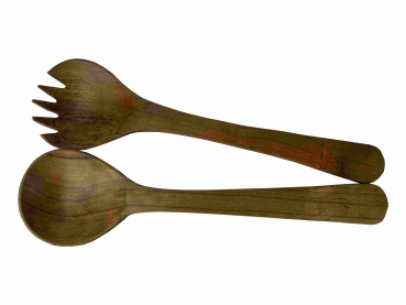 Schlichtes Salatbesteck aus Olivenholz. Schöne Handarbeit aus Kenia.