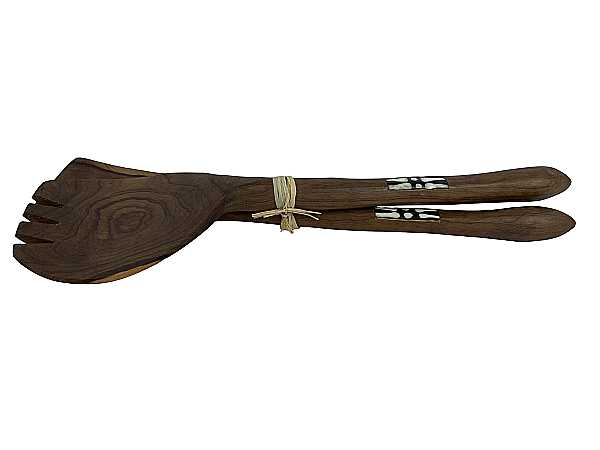 Handgeschnitztes Salatbesteck aus Olivenholz mit Knochenbatik
