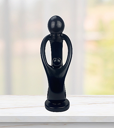 Die Figur stellt einen Erwachsenen dar, der ein Kind schützend in die Arme nimmt.