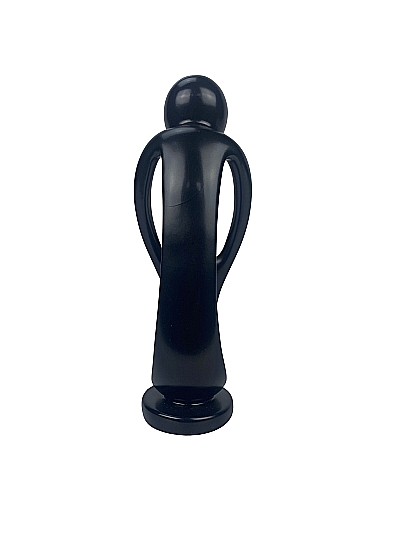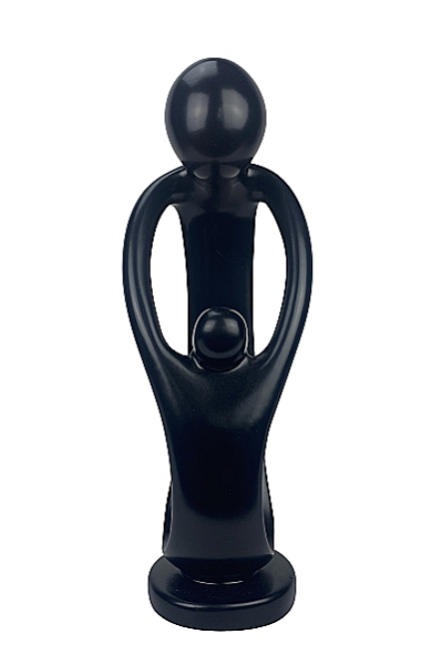 Die Skulptur ist handgeschnitzt und schwarz gefärbt.