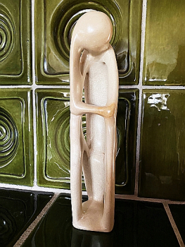 Handgefertigte Specksteinskulptur aus Kisii in Kenia, einer Stadt im Südwesten des Landes, die überwiegend von der gleichnamigen Volksgruppe bewohnt wird. Speckstein ist ein natürlich vorkommendes Gestein, dessen Hauptbestandteil Talk ist. Verschiedene Minerale haben eine farbgebende und strukturbildende Wirkung auf den Stein.