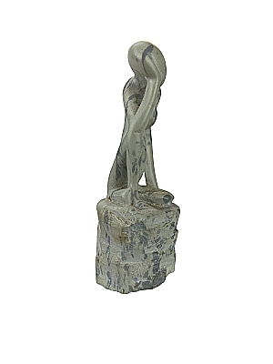 Handgefertigte Specksteinskulptur aus Kisii in Kenia, einer Stadt im Südwesten des Landes, die überwiegend von der gleichnamigen Volksgruppe bewohnt wird. Speckstein ist ein natürlich vorkommendes Gestein, dessen Hauptbestandteil Talk ist. Verschiedene Minerale haben eine farbgebende und strukturbildende Wirkung auf den Stein.
