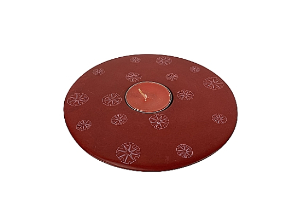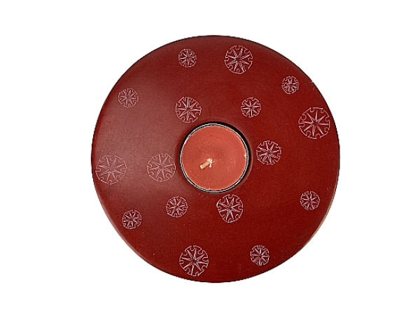 Schön gearbeiteter Teelichthalter aus Speckstein. Rot gefärbt mit eingeritztem Sternemotiv. Handarbeit aus Kenia.