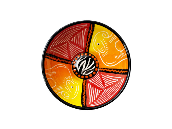 Handbemalte Schale aus bis 1200° Grad hochgebrannter Keramik. Sie ist sowohl spulmaschinenfest als auch für die Mikrowelle geeignet. Durchmesser ca. 13 cm und Höhe ca. 6,5 cm. Von Künstlern aus Kapstadt in Südafrika hergestellt und signiert.