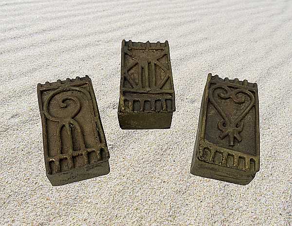 Diese kleinen Deckeldosen aus Messing wurden ursprünglich von den Akanen des Asante-Imperiums in Afrika zum Aufbewahren von Goldstaub benutzt.