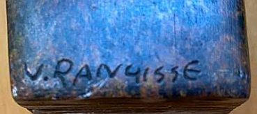 Auf der Rückseite hat der Künstler eine Signatur eingeritzt.