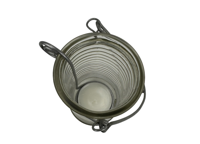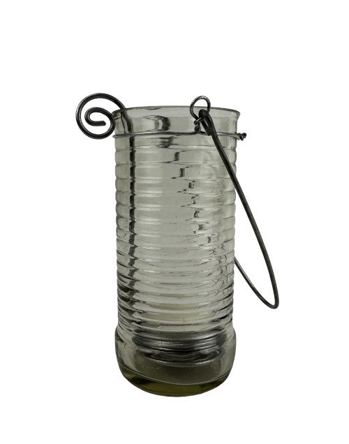 Durchmesser ca. 6 cm, Höhe des Windlichts ca. 13 cm. Höhe mit Bügel ca. 24 cm.