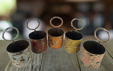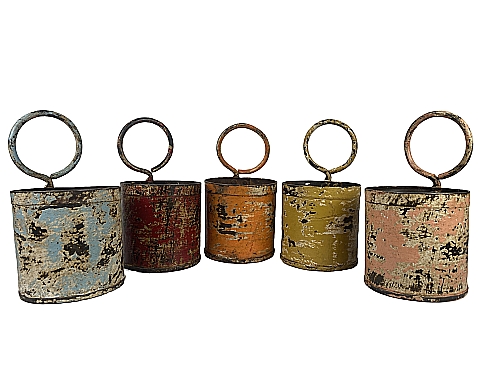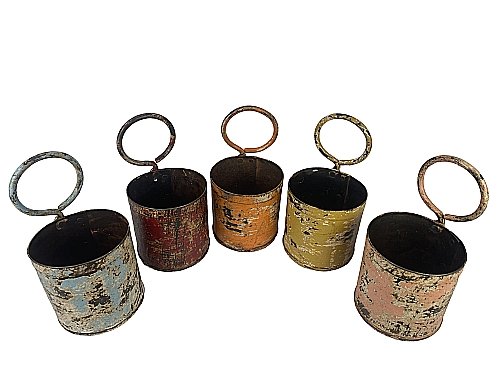 Eiserner Reisschöpfer mit Henkel. Reismaße mit Henkel wurden zum Abwiegen von Reisportionen verwendet! Heute kann man sie als Flaschenträger, Blumengefäß, Besteckhalter und vielem mehr benutzen! Herkunftsland: Indien. Durchmesser 11 cm, H 21 cm
