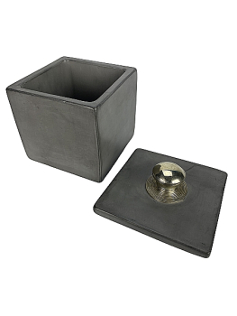 Wunderschöne graue Dose mit Deckel aus Keramik. Quadratische Würfel Form mit schön verziertem Silbergriff des Deckels. Handgefertigt in Marokko hergestellt. Besonders schön ist die schlichte Form und die eleganten Verzierungen aus Silber. Die Dose ist handgefertigt und weist die typischen Unregelmäßigkeiten handgefertigter Keramik auf. Die schöne graue Stekko Oberfläche ist matt und nicht versiegelt.