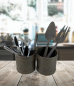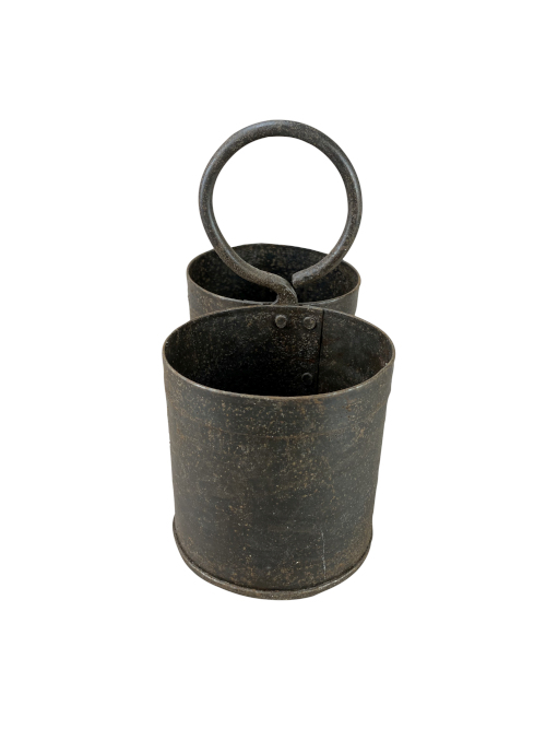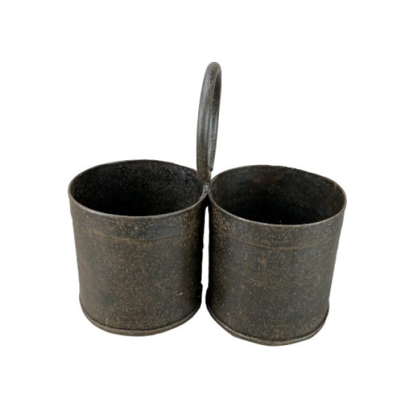Alte Dosen mit Henkel zur Aufbewahrung von Blumen, Flaschen, Besteck und was Ihnen sonst noch einfällt.