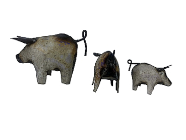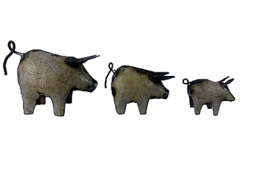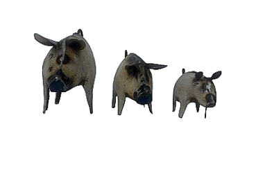 Putzige Eisenschweine in schönem Finish. Ideal zum Verschenken als Glücksbringer oder Dekoartikel. Für den Innen- und Außenbereich geeignet. In drei Größen