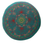 Dekorativer runder Hocker mit einem bunt bestickten Baumwollbezug und einer Füllung aus Rohbaumwolle. Ein echtes Schmuckstück für jede Wohnung. Durchmesser der Sitzfläche ist 40 cm. Die Höhe ist ca. 22 cm.