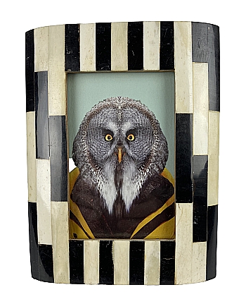 Außergewöhnlicher Bilderrahmen mit geschnitzten und polierten schwarzen Hornstücken und polierten Knochenscheiben belegt.