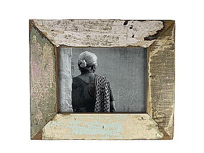 Bilderrahmen aus altem Teakholz gefertigt. Das Holz stammt aus dem Abriss alter Verwaltungsgebäude von Fabriken in Indien.