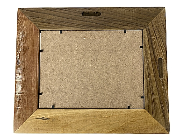 Der Rahmen kann sowohl hochkant als auch quer gehängt werden. Dafür sind auf der Rückseite zwei entsprechende Nuten eingefräst.