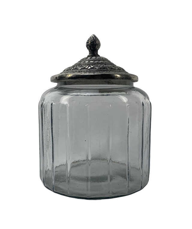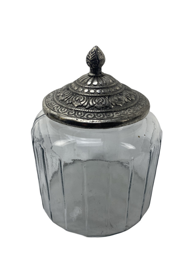 Nachbildung einer klassischen Bonboniere aus der Zeit zu Beginn des 20. Jahrhunderts. Aus Glas gefertigt mit einem reich verzierten Gussdeckel. Gefüllt mit Süßigkeiten oder anderen Kleinigkeiten eine wunderbare Geschenkidee. Durchmesser ca. 14 cm und 17 cm hoch.