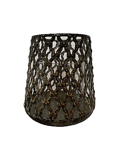 Windlich konisch in Kupfer oxidiert Optik mit Glaseinsatz.