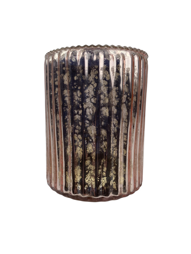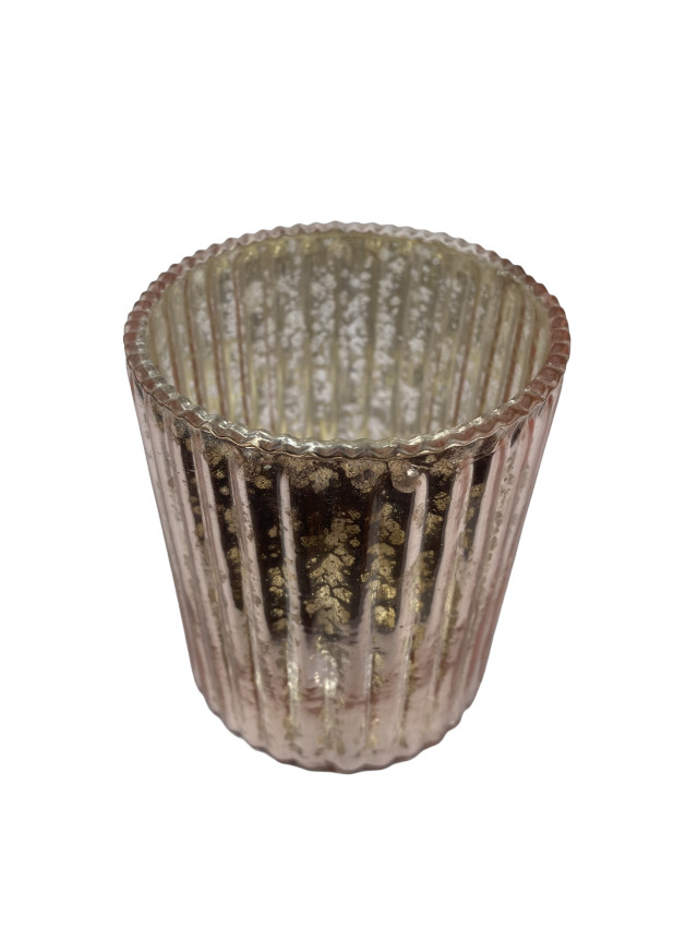 Dekoratives Windlicht aus Glas mit schöner Rillenstruktur. Mit altrosa getönter Färbung im Stil des Bauernsilbers.