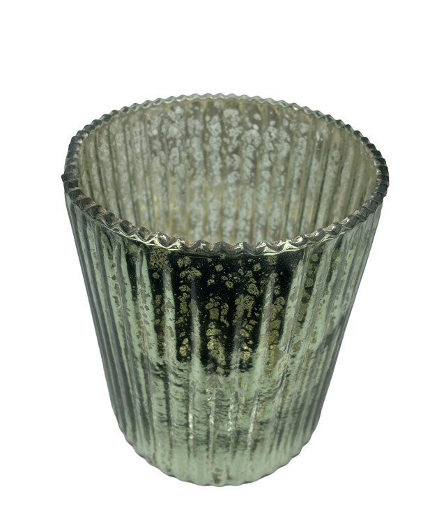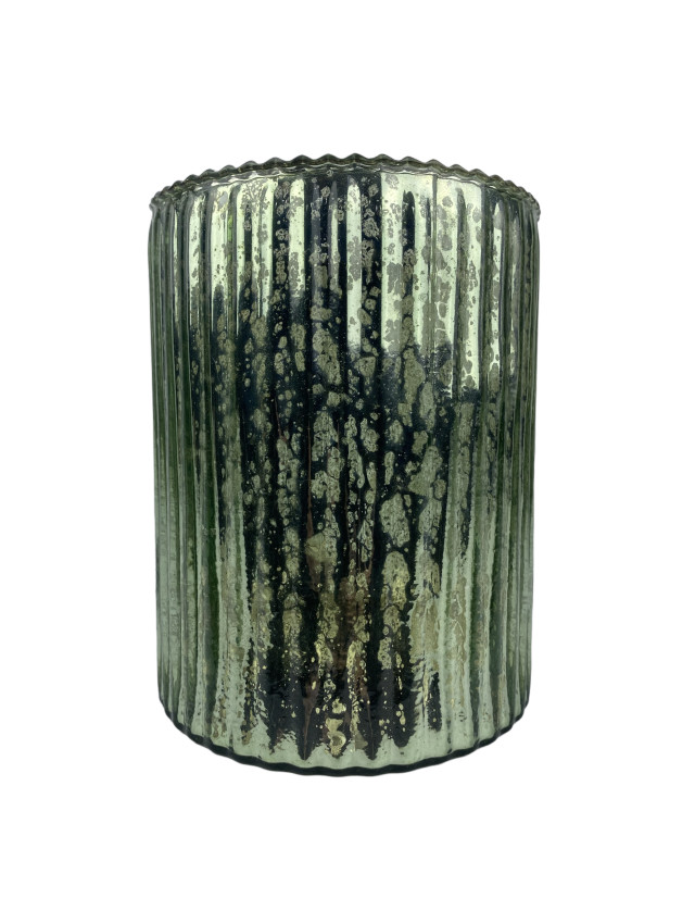 Dekoratives Windlicht aus Glas mit schöner Rillenstruktur. Mit grün getönter Färbung im Stil des Bauernsilbers.