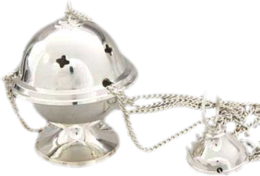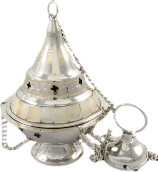 Weihrauchschwenker mit Kette, Echt Perlmutt- Einlage, Messing vernickelt 12 x 9 cm