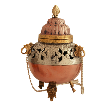 Gefäße und alles Zubehör für das traditionelle Räucherritual auf glühender Holzkohle. Weihrauchfässer, Standgefäße und