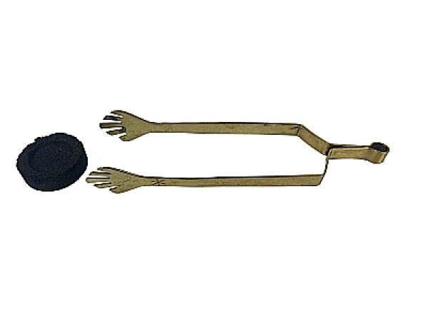 Aus Messing gefertigte Räucherkohlenzange. Formschönes Zubehör für Ihr Räucherritual.