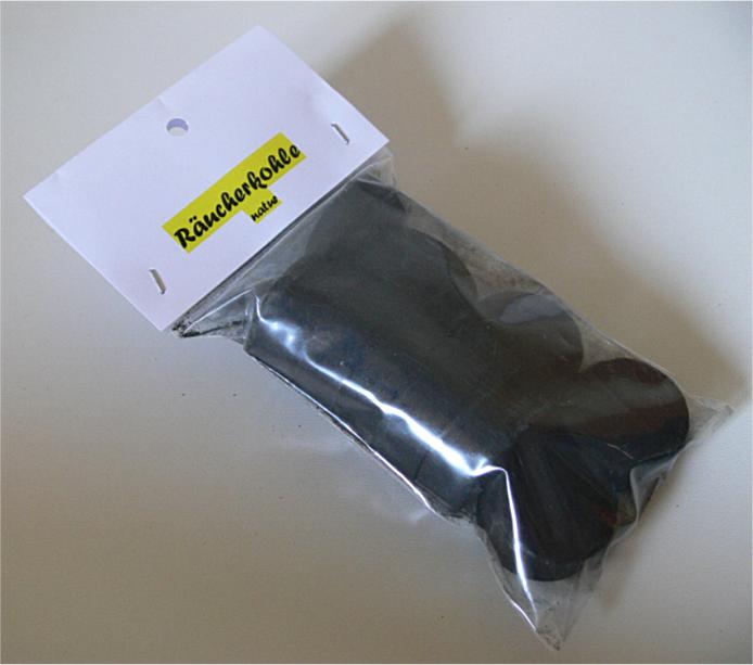 Räucherkohle ohne chemische Zusätze zur Schnellzündung. Etwas aufwendiger beim Entzünden, dafür ein naturreines Aroma.