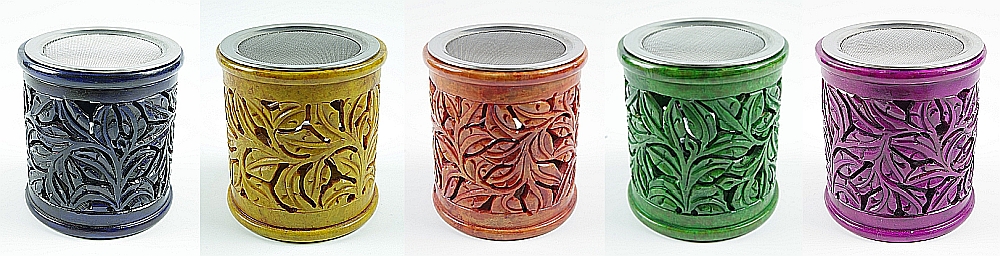 Schön gearbeitetes Räucherstövchen aus Speckstein. Von Hand ist ein kunstvolles florales Muster eingeschnitzt. Für das komfortable Räuchern hat es ein 90 mm Sieb aus Edelstahl. Durchmesser und Höhe 100 mm.